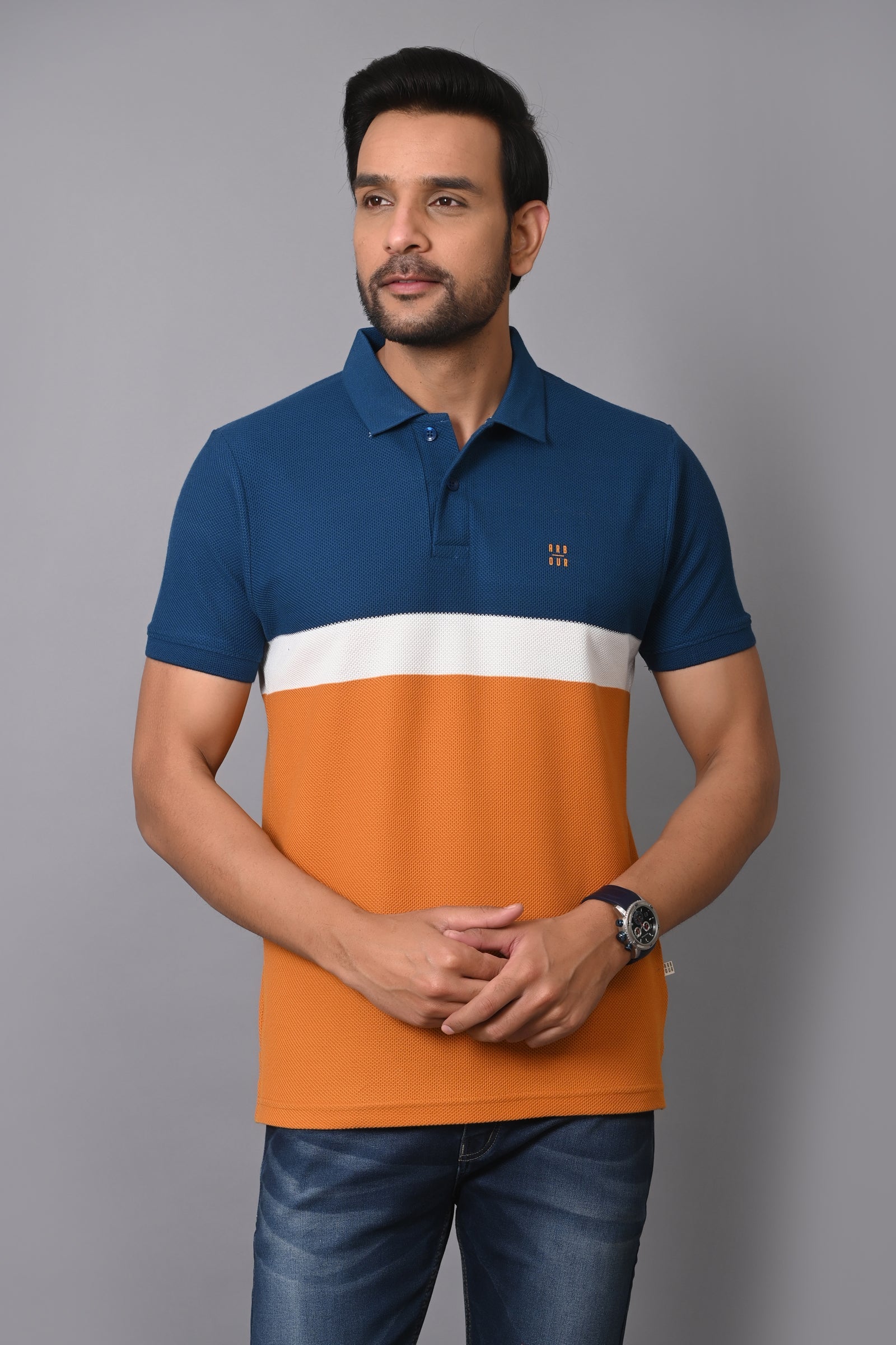 Arbour Men Polo Neck Cotton Color Block Casual Half Sleeves T-Shirt