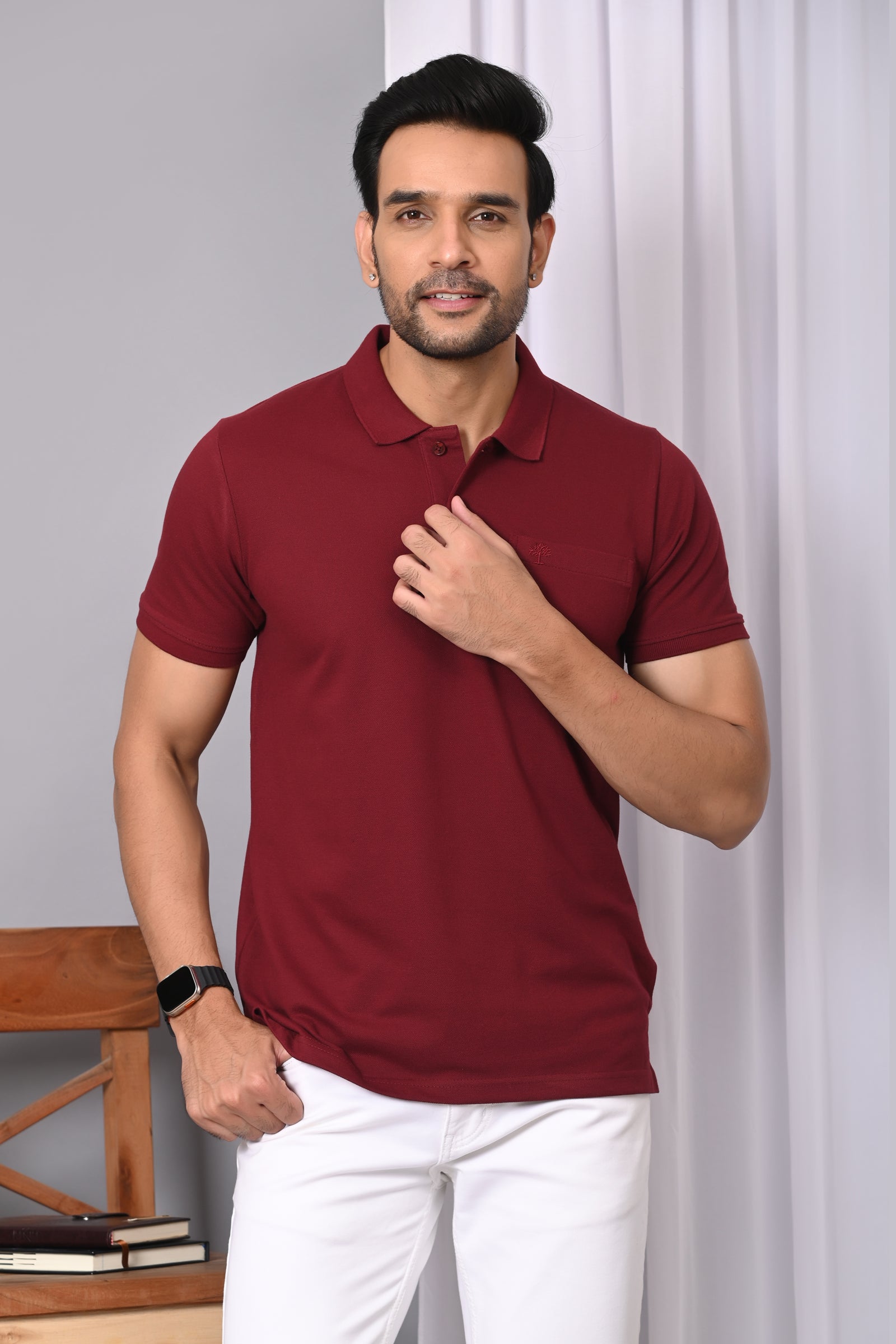 Arbour Men Polo Neck Solid Plain Half Sleeves Pocket T-Shirt