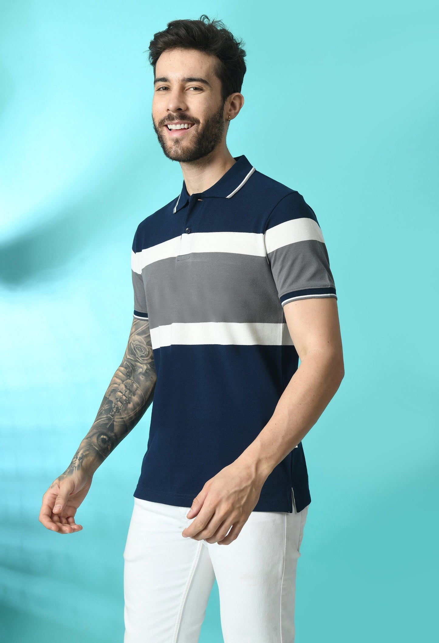 Arbour Men Polo Neck Stripes Slim Fit half Sleeves T-Shirt