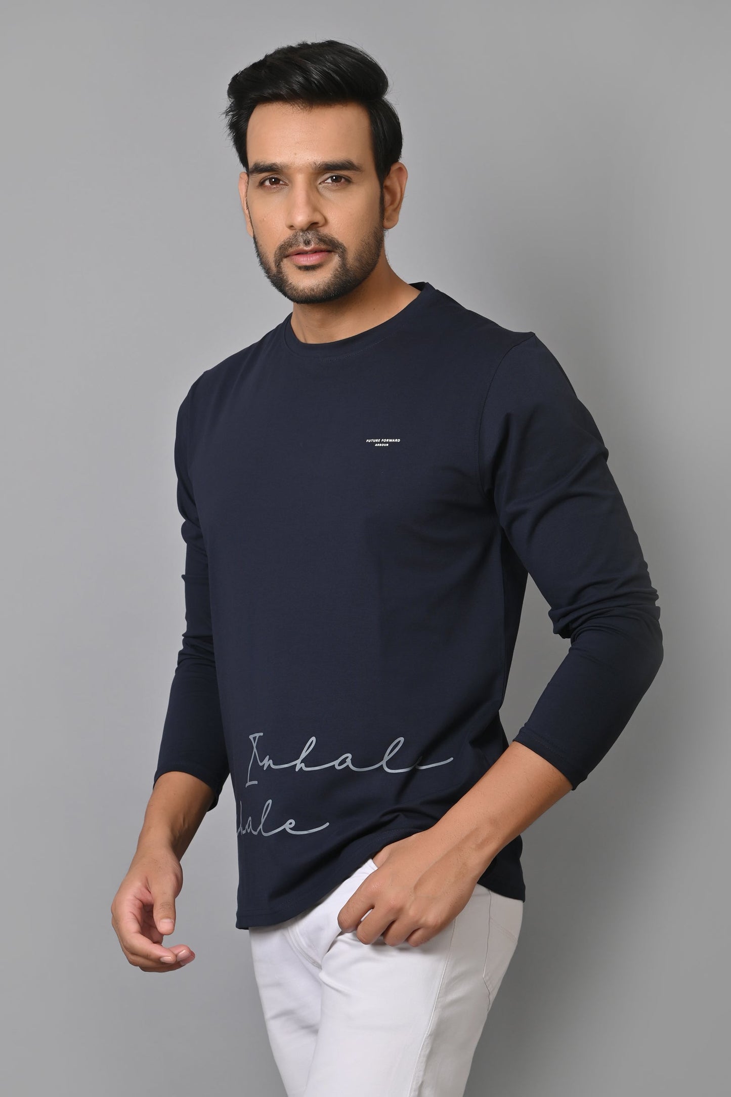 Arbour Men Round Neck Printed Slim Fit Full Sleeves T-Shirt